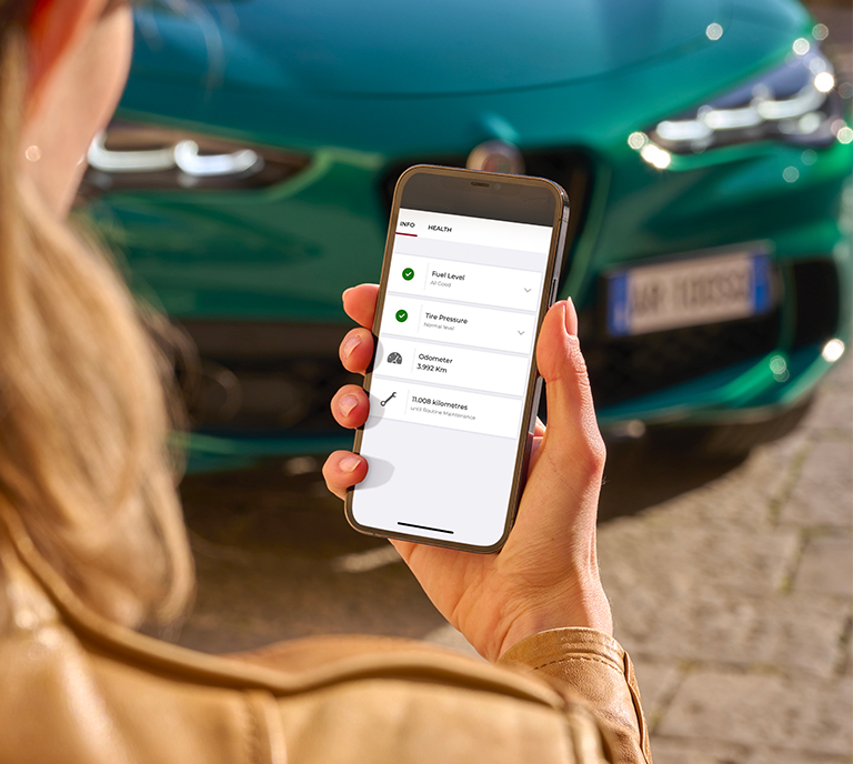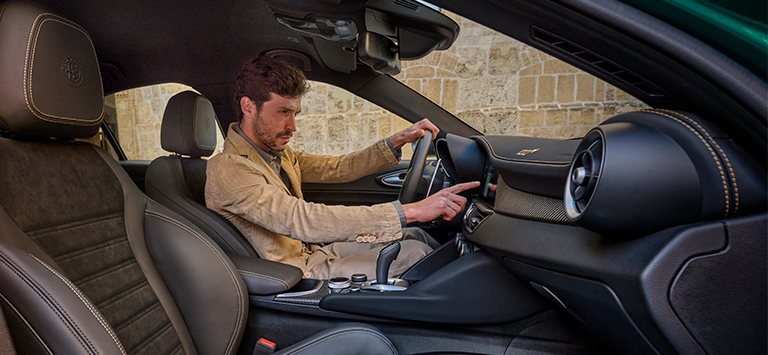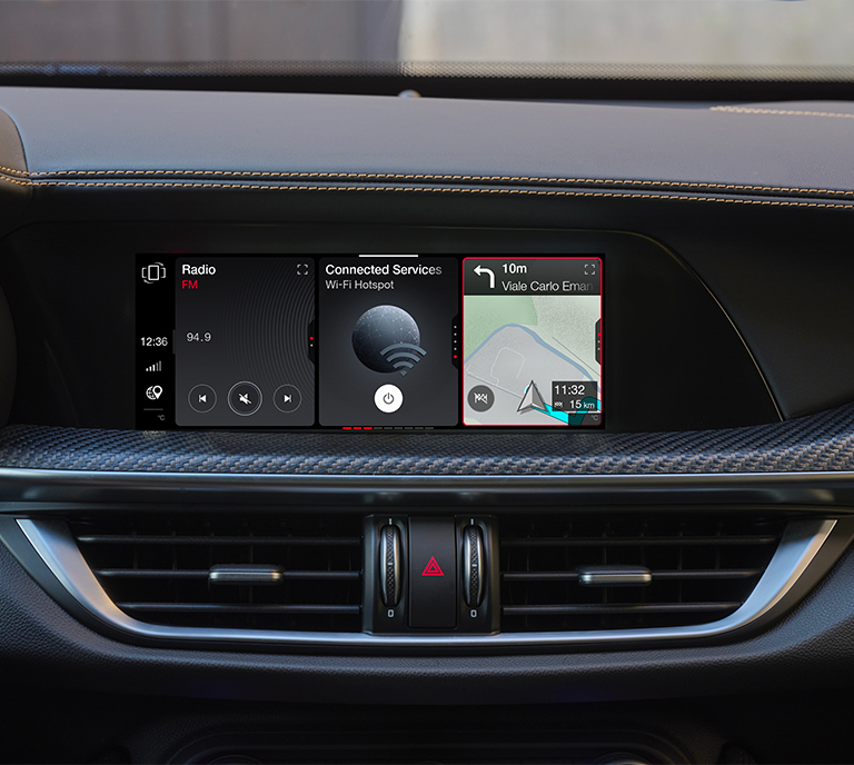 Die Giulia Quadrifoglio 100° Anniversario und der Stelvio Quadrifoglio 100° Anniversario verfügen über moderne Technologien, die selbst die höchsten Erwartungen erfüllen. Ein integriertes System reichhaltiger digitaler Services bereichert Ihr Fahrerlebnis zusätzlich.