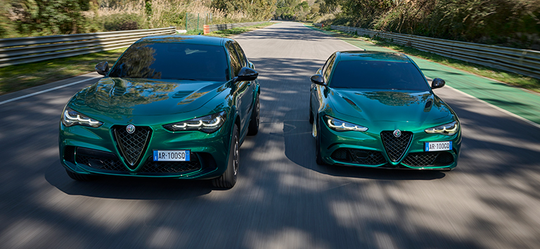 100 Exemplare des Stelvio Quadrifoglio. 100 Exemplare der Giulia Quadrifoglio. Die streng limitierten Quadrifoglio 100° Anniversario Sondereditionen würdigen die legendäre Geschichte der sportlichsten Versionen von Giulia und Stelvio und kombinieren Leistung mit italienischem Design.