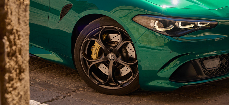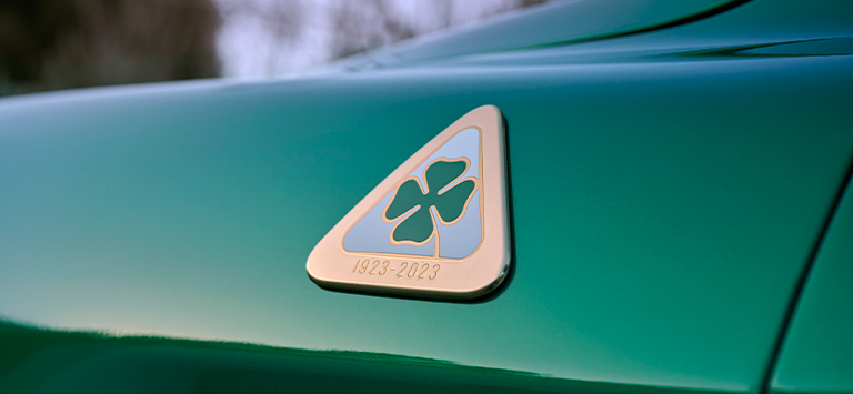Ein Glückssymbol, das für Alfa Romeo zur Legende wurde, als Ugo Sivocci damit die Targa Florio 1923 gewann und seinen seinen ersten Rennsieg feierte. Seitdem steht das Quadrifoglio nicht nur für Glück, sondern auch für Einsatzbereitschaft, Liebe zum Detail, Mut und Leistung. Zum 100-jährigen Jubiläum verpasst ihm das Centro Stile Alfa Romeo eine neue, prestigeträchtige Note mit goldenen Nuancen, die sich auch auf den Bremssätteln und den farbigen Nähten im Interieur wiederfinden.