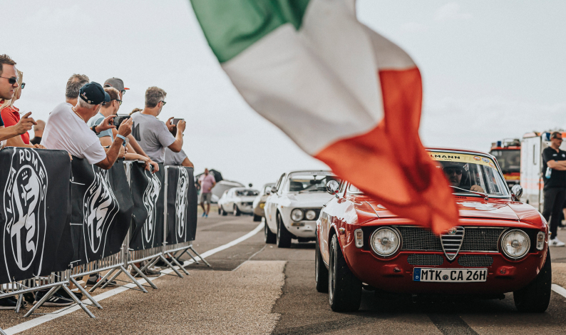 Der „Giro d’Italia“ ist Fahrzeugen mit regulärer Straßenzulassung vorbehalten, angemeldet wurde unter anderem auch ein Alfa Romeo Montreal. Im „Gran Premio Alfa Romeo“ tummeln sich mir Schalensitzen und Überrollbügel ausgerüstete GT-Fahrzeuge der italienischen Traditionsmarke auf der Piste. In diesem Feld starten unter anderem eine Alfa Romeo Giulietta Sprint Veloce und mehrere Alfa Romeo Giulia GTAm.