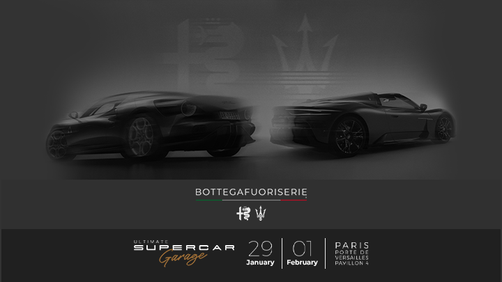 BOTTEGAFUORISERIE präsentiert sich erstmals der Öffentlichkeit bei der Ultimate Supercar Garage, der neuen Veranstaltung für zeitgenössische Supersportwagen, die im Rahmen der 50. Ausgabe der Rétromobile vom 29. Januar bis 1. Februar 2026 auf dem Paris Expo Porte de Versailles stattfindet. Auf dieser prestigeträchtigen Bühne stehen Alfa Romeo und Maserati gemeinsam im Rampenlicht, vereint durch ein visionäres Projekt, das die Exzellenz beider italienischer Marken in einem einzigen kreativen Universum vereint.