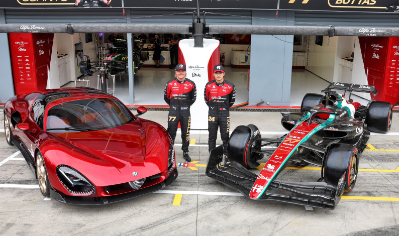 - Valtteri Bottas und Zhou Guanyu, die Piloten des Formel-1-Teams von Alfa Romeo, heißen das Coupé willkommen, das nur 33 Mal gefertigt wird.