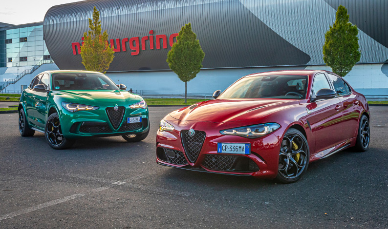 Der Nürburgring spielt in der Historie von Alfa Romeo eine ganz besondere Rolle. In der „grünen Hölle“ der Eifel feierte die italienische Traditionsmarke bemerkenswerte Siege in unterschiedlichen Fahrzeugklassen, von den Grand-Prix-Rennen der Vorkriegsära bis zur Deutschen Tourenwagen-Meisterschaft (DTM). Als Bemalung beziehungsweise Beklebung immer mit an Bord: das Logo in Form eines vierblättrigen Kleeblatts, das Quadrifoglio als Glücksbringer. Jetzt schließt sich der Kreis. Auf den kurvenreichen Nebenstraßen rund um den Nürburgring präsentieren sich die Quadrifoglio-Versionen der Modelle Giulia und Stelvio erstmals auf deutschem Boden. Ihre Publikumspremiere erleben Alfa Romeo Giulia Quadrifoglio und Alfa Romeo Stelvio Quadrifoglio beim „Gran Premio Alfa Romeo“ (26. und 27. August 2023), einer Veranstaltung in der Reihe „Pista&Piloti“ auf dem Gelände des TRIWO-Testcenters, dem ehemaligen Flugplatz Pferdsfeld in der Pfalz.